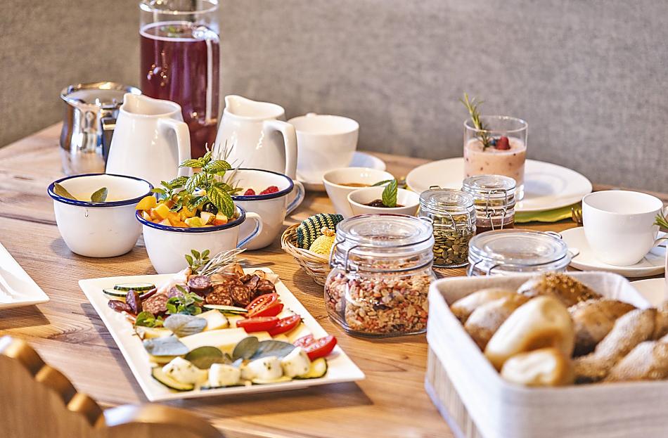 - Produkty z własnego gospodarstwa na śniadanie: mleka, jogurt, ser, masło, inne produkty mleczne, speck, wędliny, jajka, dżemy, syrop, soki owocowe, suszone owoce, chutney, przetwory, herbaty ziołowe, przyprawy ziołowe, chleb, pieczywo, świeże warzywa sezonowe, świeże owoce sezonowe