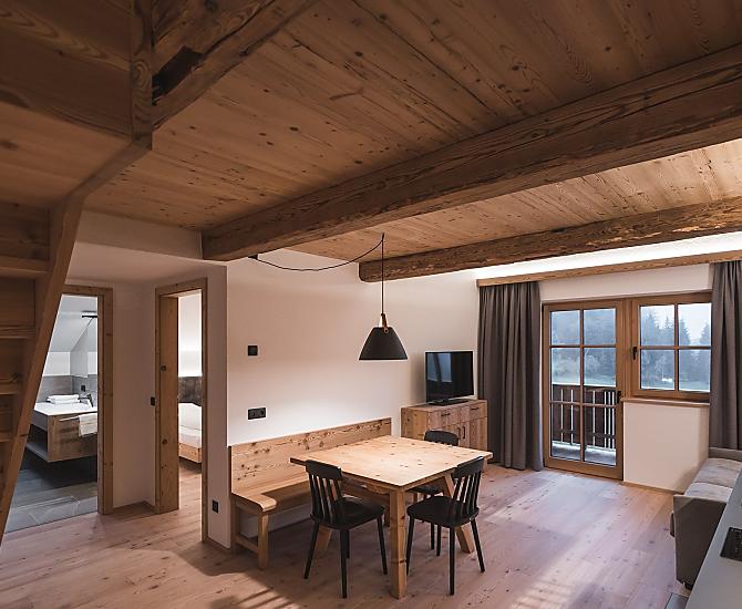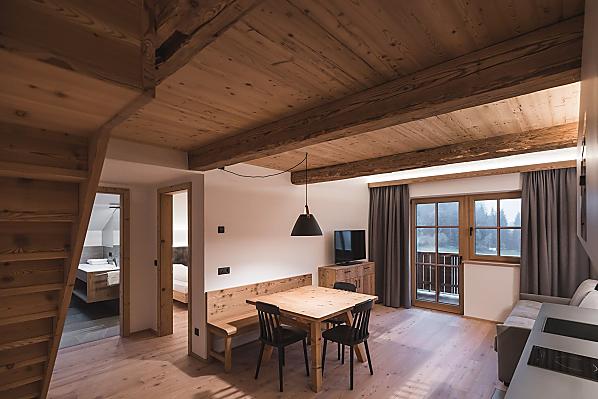 Nasze gospodarstwo znajduje się przy wjeździe do St. Magdalena w dolinie Gsiesertal, w pobliżu naszego lasu mieszanego „Weider-Bach”. Już z balkonu mieszkania często można obserwować różne dzikie zwierzęta, takie jak sarny, jelenie lub zające wybiegające z lasu na wypas. Ciesz się imponującym świergotem ptaków podczas relaksu na trawniku do opalania w gospodarstwie, pozwól rolnikom doradzić w sprawie pieszych wędrówek lub przekąsek albo zapytaj o liczne możliwości wycieczek narciarskich w wiosce. Nasi goście mają osobne wejście do apartamentów, ponieważ w trakcie przebudowy wybudowano osobną klatkę schodową. Dom jest całkowicie izolowany termicznie i ogrzewany w sposób przyjazny dla klimatu pelletem drzewnym. Ponadto jesteśmy dumni z dobrych właściwości dźwiękochłonnych ścianek działowych mieszkania.