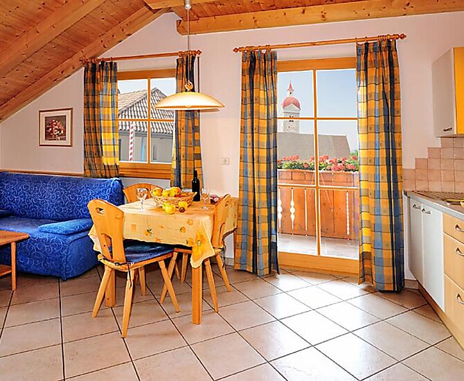 Aktywne i piesze wakacje w naszym gospodarstwie na slonecznym plaskowyzu jablkowym. Idealny na kazda pore roku. Nasze gospodarstwo znajduje sie w centrum Natz i jest idealnym punktem wyjscia do wycieczek pieszych i rowerowych. Wieczorem na tarasie mozna napic sie dobrego wina i skosztowac tradycyjnych potraw. Nasze mieszkania wakacyjne sa prosto i pieknie urzadzone i znajduja sie na poddaszu. Otwarta wiezba dachowa nadaje mieszkaniom rustykalny charakter. Ciesz sie na wakacje z nami i poznaj nasza farme i piekne okolice ze wszystkimi ich obliczami, wiosna, latem, jesienia i zima.