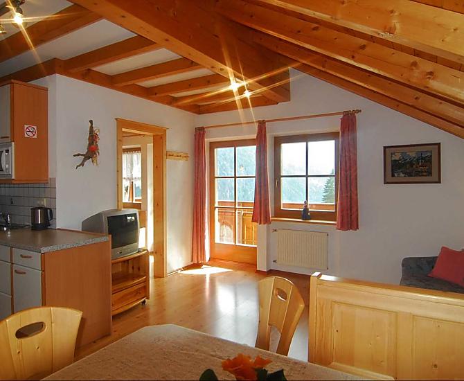 Nasze gospodarstwo polozone jest na wysokosci 1336 m n.p.m. w bardzo spokojnym i zacisznym miejscu. Gospodarstwo jest idealnym punktem wyjscia do wedrówek z pieknym widokiem na doline. Tuz obok naszego domu znajduje sie wyciag Riepenlift, szczególnie polecany dla rodzin z dziecmi.
