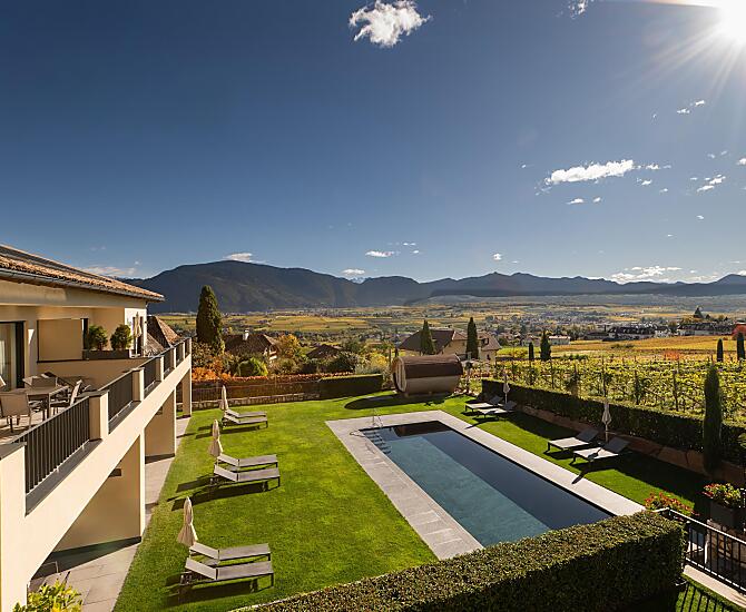 Twoja farma wakacyjna w sercu Poludniowego Tyrolu! Nowo wybudowana winiarnia Gasshof, polozona w wiosce Eppan-Berg, jest otoczona winnicami, dworami i zamkami. Twoje gospodarstwo wakacyjne z panoramicznym widokiem na Dolomity oferuje piec mieszkan o wysokim standardzie. Ciesz sie relaksujacym wypoczynkiem w naszych przytulnych mieszkaniach wakacyjnych.