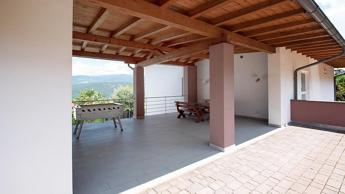 Nowo wybudowane, nowoczesne gospodarstwo owocowe w poludniowym Tyrolu, ze slonecznymi mieszkaniami wakacyjnymi i pieknymi widokami na krajobraz owocowo-winny i Dolomity.