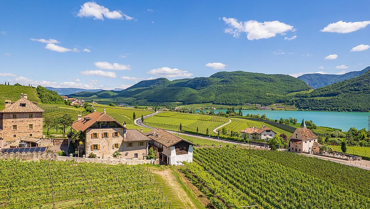 Odnowione sredniowieczne gospodarstwo w srodku winnic, 10 minut spacerem od jeziora Kaltern, z wlasna Buschenschänke i piwnica win.