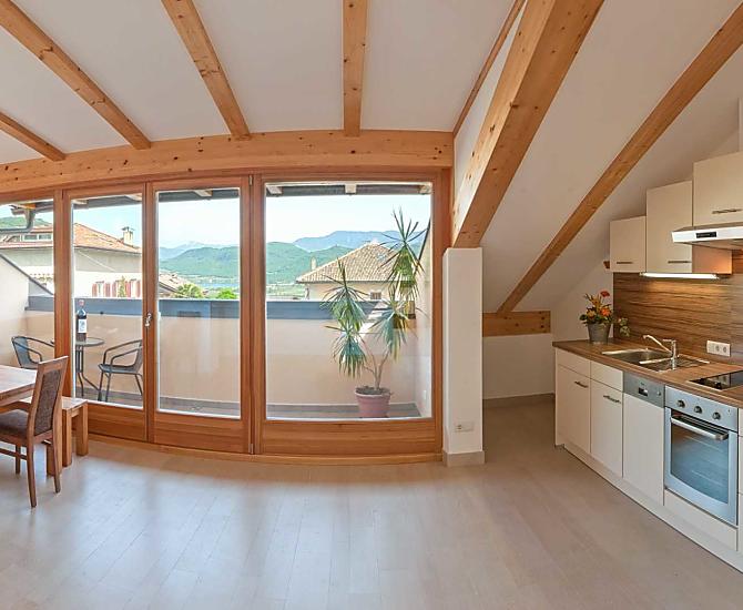 Nasz dom znajduje sie w dzielnicy St. Jakob in Kastelaz, w spokojnym miejscu nad centrum wsi Tramin. Polozenie naszego gospodarstwa mozna okreslic jako wyjatkowe, poniewaz masz czysty, niezaklócony widok na cala doline i centrum wsi Tramin, w tym na wieze kosciola. Trzy prawie stuletnie drzewa cedrowe w ogrodzie zdobia nasz dom.