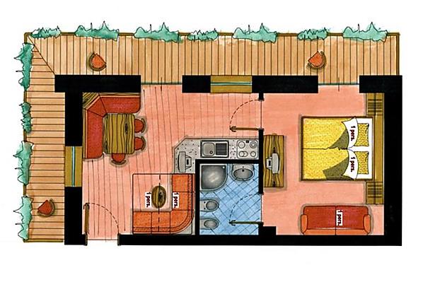 1 studio: 2-3 osób