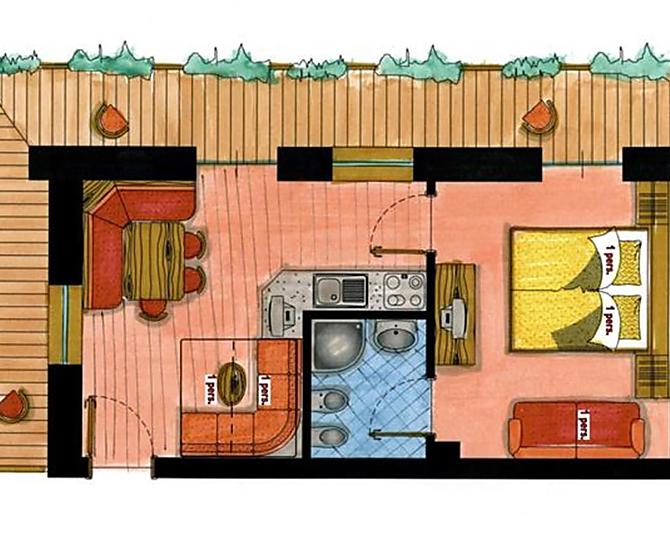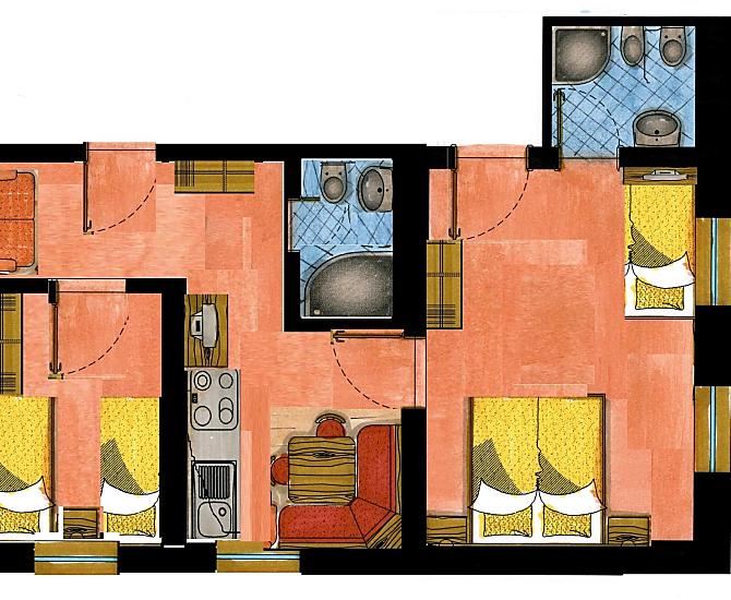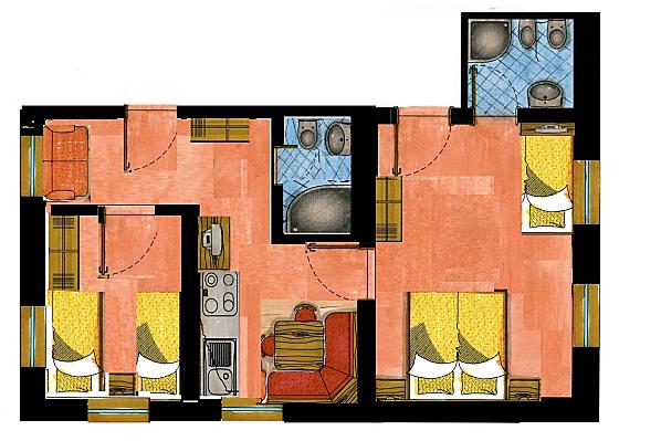 4 apartamenty: 2-4 osób, 2-5 osób, 2-6 osób