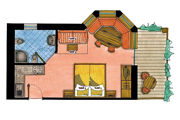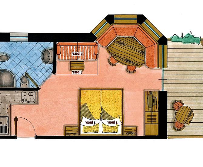 2-3 osób (2 stałych łóżek) 30m²