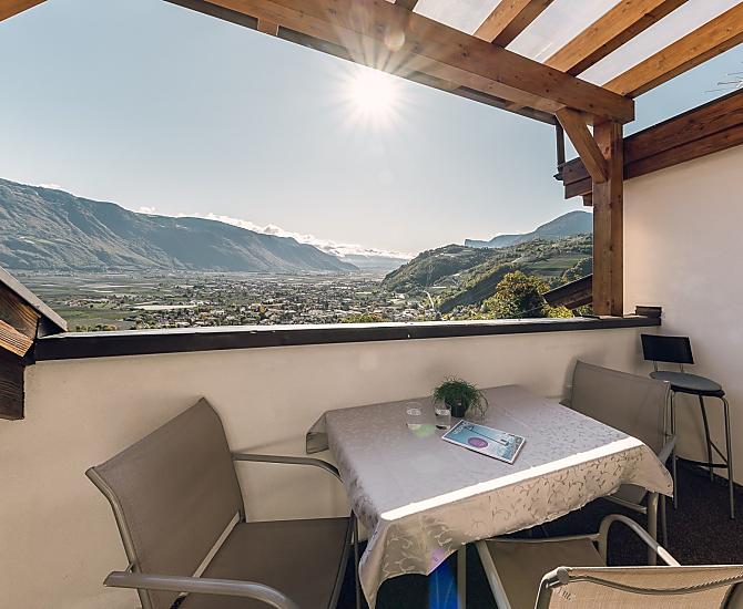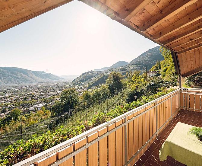 Nasze gospodarstwo polozone jest na obszarze uprawy owoców i winorosli w malowniczym i absolutnie spokojnym regionie ze wspanialym widokiem na doline Etschtal od Merano do Bolzano. Punkt wyjscia do pieknych wedrówek, szlaków wzdluz kanalów nawadniajacych - Waalwege - i jeden kilometr od kolejki linowej Vigiljoch.