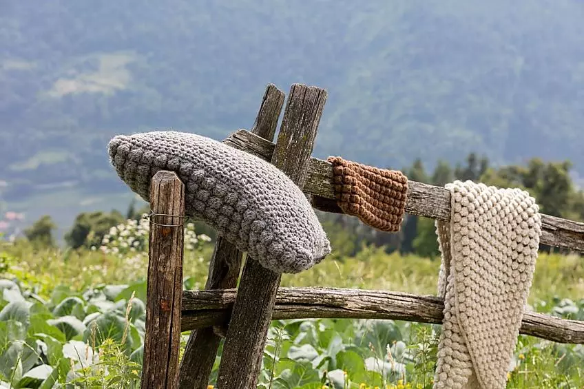 Za pomocą nici, nożyczek, szydełka i wełny owczej pochodzącej wyłącznie z Południowego Tyrolu ta młoda gospodyni wyczarowuje rozmaite piękne wyroby włókiennicze. „Dużą część wełny mam od naszych własnych owiec. Gdy zostaną ostrzyżone, piorę wełnę w taczce, aby pozbyć się zanieczyszczeń, a następnie suszę bezpośrednio w naszym gospodarstwie. Po gręplowaniu i obróbce używam nawiniętej nici do szydełkowania”. Produkty Johanny Aichner cieszą się obecnie dużym uznaniem, większość wyrobów sprzedawana jest za pośrednictwa Instagrama i Facebooka. Wyroby wykonane ręcznie robią bowiem duże wrażenie zwłaszcza wśród młodych ludzi, zdradza.