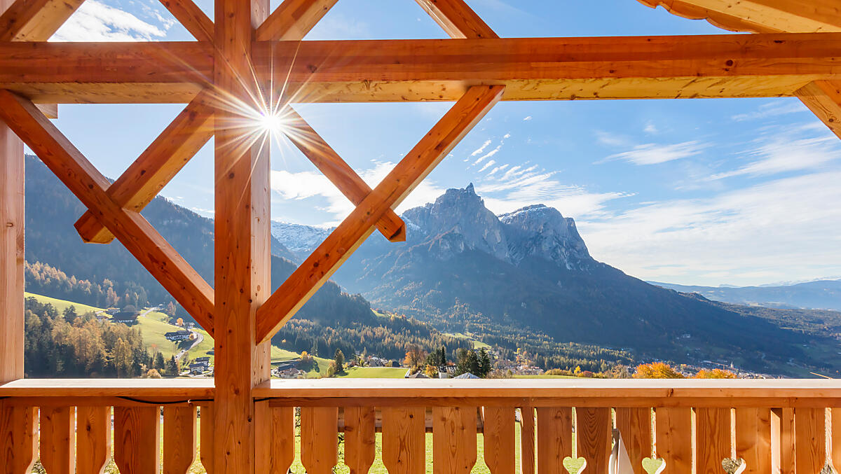 W gospodarstwach u stóp Seiser Alm słońce już od rana zagląda ponad Schlern – górę, która jest symbolem Południowego Tyrolu.