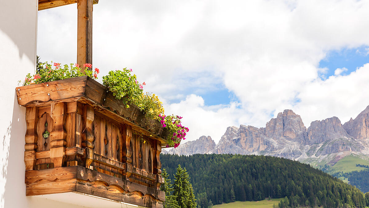 Balkon pełen kwiatów i majestatyczny widok zdają się tu rywalizować o uwagę – w Welschnofen natura i bezkresna przestrzeń łączą się w imponującą całość.