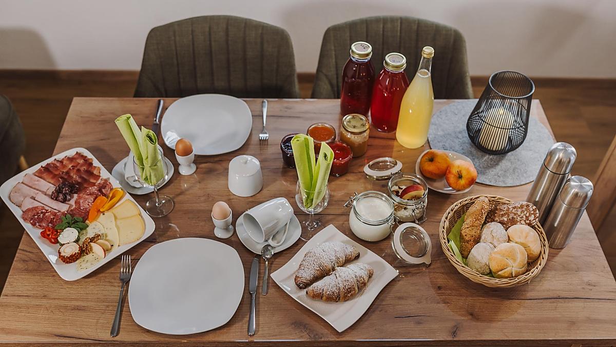 - Produkty z własnego gospodarstwa na śniadanie: mleka, jogurt, speck, wołowina wędzona, wędliny, jajka, miód, dżemy, syrop, herbaty ziołowe, pieczywo, świeże warzywa sezonowe, świeże owoce sezonowe