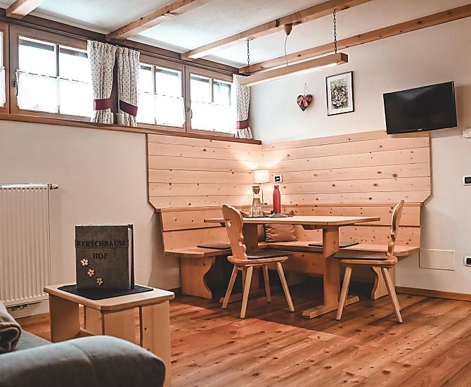Ucieknij od codzienności i zafunduj sobie relaksujące wakacje w rodzinnym gospodarstwie w pięknej dolinie Hochpustertal. Kerschbaumhof położony jest na wysokości 1460 m w cichej, pięknej i słonecznej okolicy, pomiędzy lasem a łąkami. Komfortowe apartamenty wakacyjne oferują niezapomniane wakacje w pięknej dolinie Hochpustertal, z przepięknym widokiem na Sexteńskie Dolomity, wpisane na Listy Światowego Dziedzictwa UNESCO. Orzeźwiające górskie powietrze i wspaniałe alpejskie pejzaże sprawiają, że wakacje będą niezapomnianym przeżyciem. Piesze wędrówki, wspinaczka i jazda na nartach będą przygodą dla całej rodziny. Nasi goście mogą również delektować się pysznym śniadaniem z produktami rolnymi, a także typowym Marende.