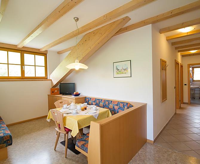 Ucieknij od codzienności i zafunduj sobie relaksujące wakacje w rodzinnym gospodarstwie w pięknej dolinie Hochpustertal. Kerschbaumhof położony jest na wysokości 1460 m w cichej, pięknej i słonecznej okolicy, pomiędzy lasem a łąkami. Komfortowe apartamenty wakacyjne oferują niezapomniane wakacje w pięknej dolinie Hochpustertal, z przepięknym widokiem na Sexteńskie Dolomity, wpisane na Listy Światowego Dziedzictwa UNESCO. Orzeźwiające górskie powietrze i wspaniałe alpejskie pejzaże sprawiają, że wakacje będą niezapomnianym przeżyciem. Piesze wędrówki, wspinaczka i jazda na nartach będą przygodą dla całej rodziny. Nasi goście mogą również delektować się pysznym śniadaniem z produktami rolnymi, a także typowym Marende.