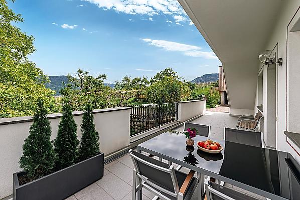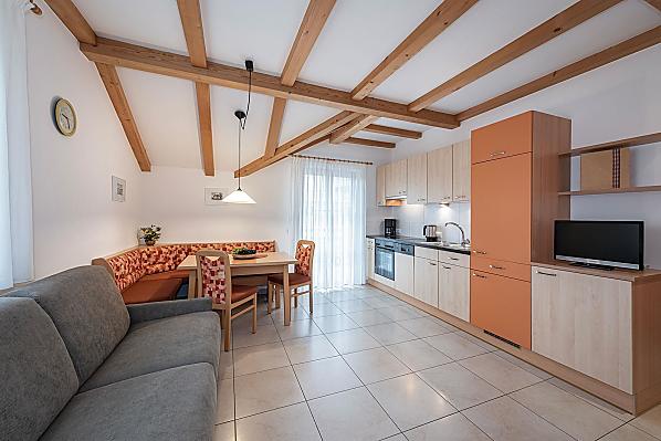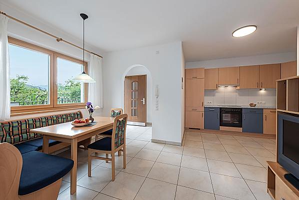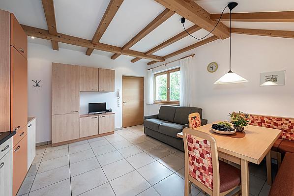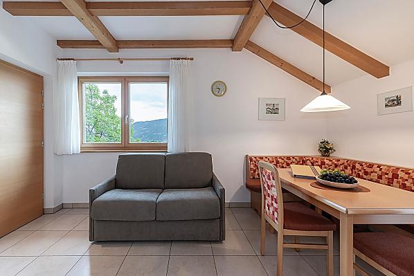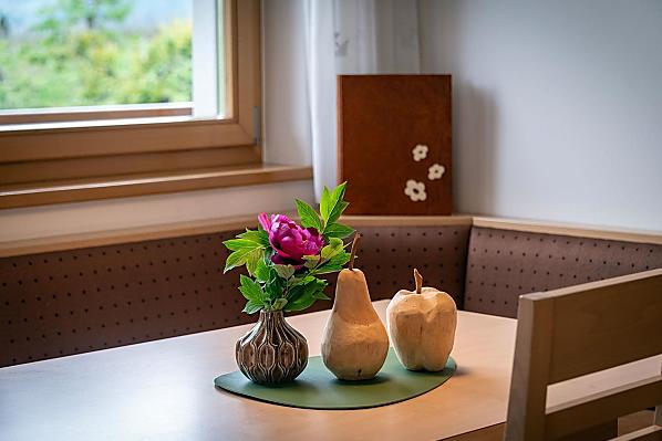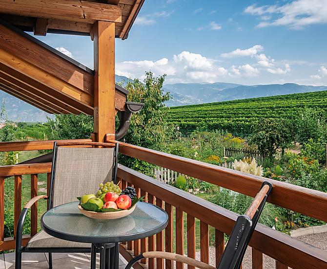 Gospodarstwo prowadzone jest już przez czwarte pokolenie naszej rodziny i położone jest pośród uprawianych przez nas winnic i sadów jabłkowych, na spokojnym obrzeżu miejscowości Girlan. Nasza zadbana łąka z altaną i widokiem na sady i okoliczne góry zachęca do odpoczynku i relaksu.